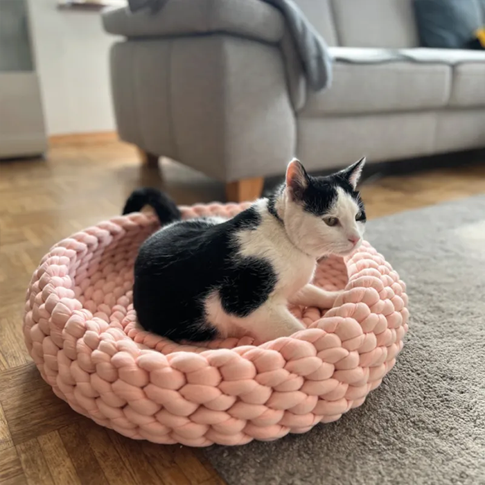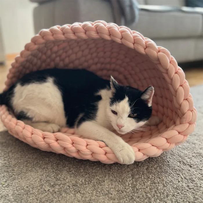 Handwoven cotton blend cat basket offering a warm, cosy and stylish resting place.