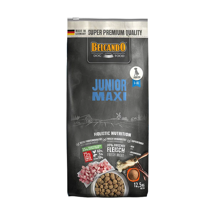Belcando Puppy Junior Poultry is specially developed for growing puppies and young dogs. The recipe provides a balanced combination of nutrients to support healthy development during the growth phase.