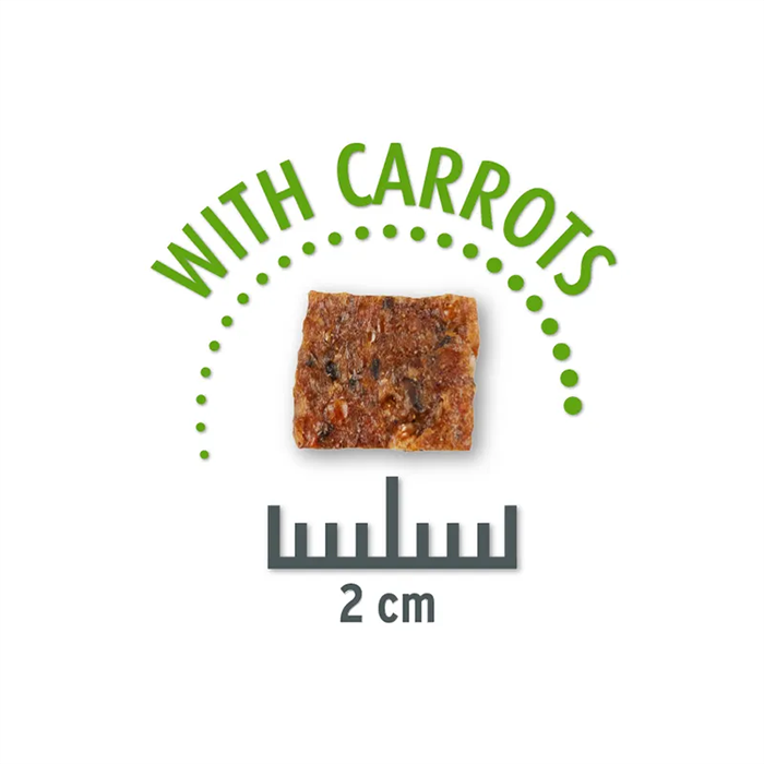 Grain-free dog treat with mealworms, crickets and carrot, specially developed for dogs with food sensitivities.