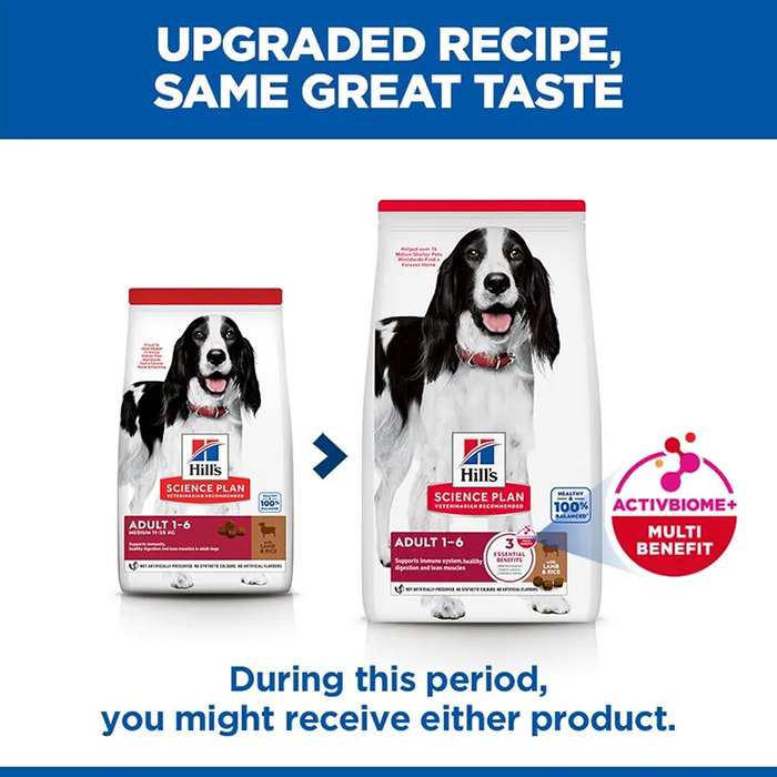 Hill's Science Plan Adult Lamb & Rice is a complete dry dog food developed for adult dogs aged 1–6 years. The recipe is designed to support everyday health while providing balanced energy and high digestibility.