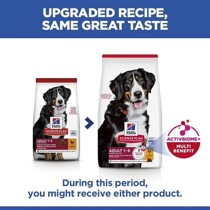 Hill's Science Plan Adult Large Breed Chicken is specially formulated for adult dogs of large breeds. Large dogs have specific nutritional needs, particularly when it comes to maintaining healthy joints and strong muscles.