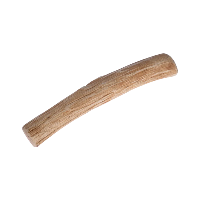 The hard wood structure helps reduce plaque build-up through mechanical abrasion and stimulates saliva production, which contributes to improved oral hygiene. It also supports jaw muscles through consistent chewing activity.