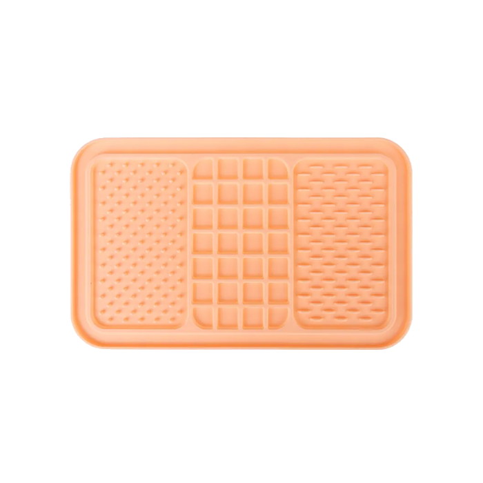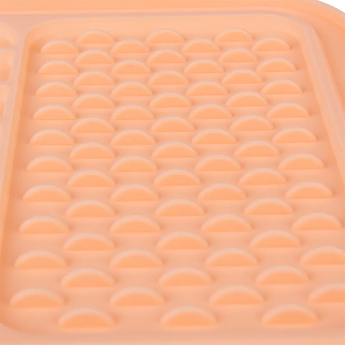 Lick mat with suction cups made from food-grade silicone, designed to slow feeding and reduce stress.