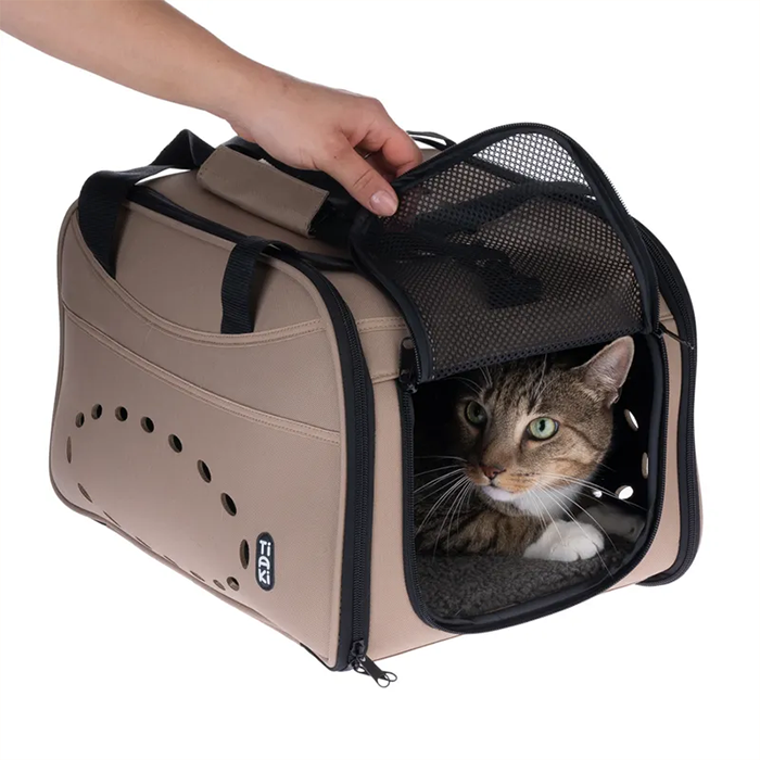 TIAKI Lightweight Pet Carrier Bag is a practical and comfortable transport solution for cats and small dogs up to 4 kg. Its structured yet lightweight design makes it ideal for everyday travel, vet visits or short trips.